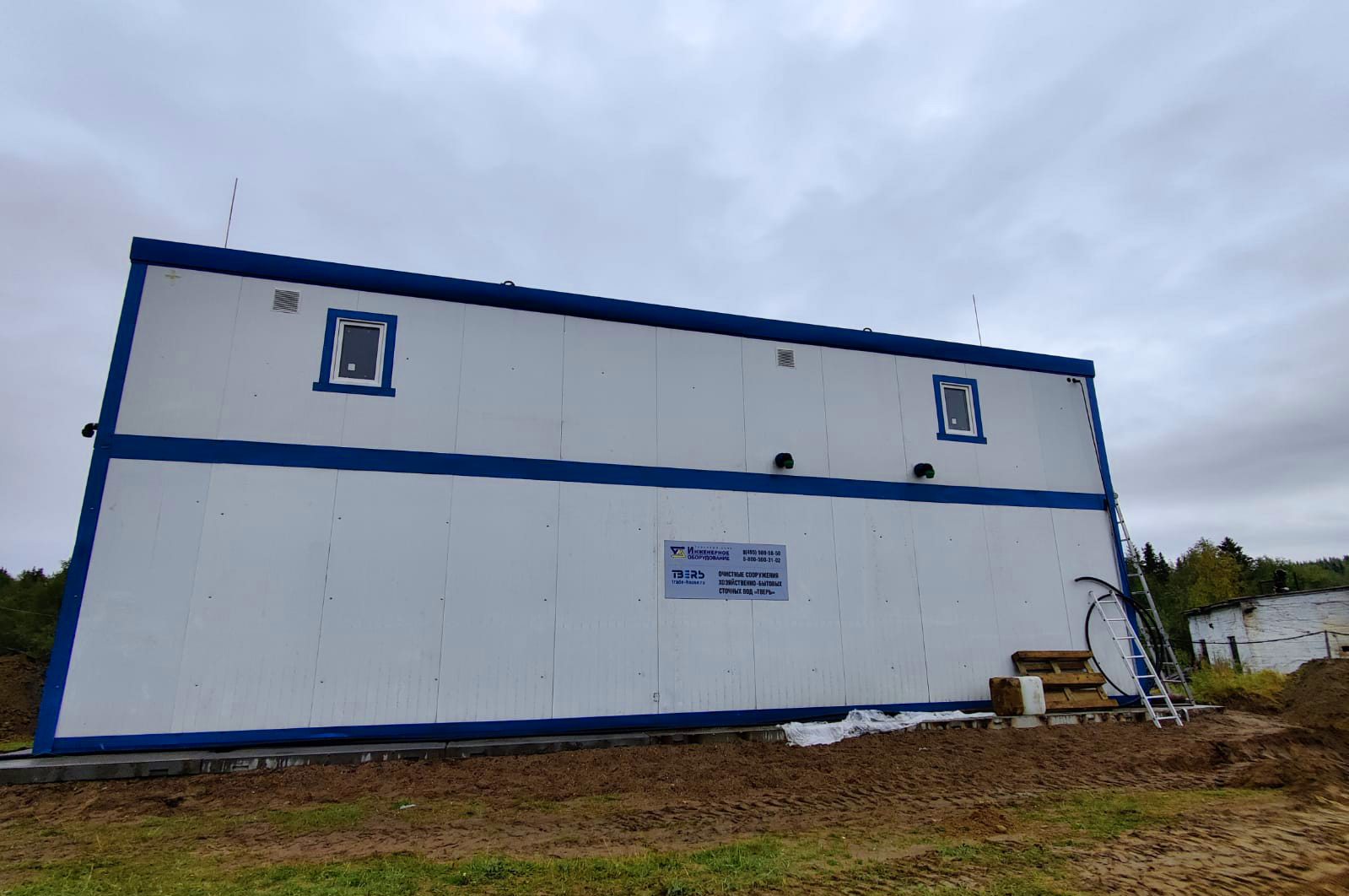 Станция очистки бытовых сточных вод "ТВЕРЬ-6С" представляет из себя утепленное здание из блок-модулей, установленных на фундаменте, со всем технологическим оборудованием внутри.