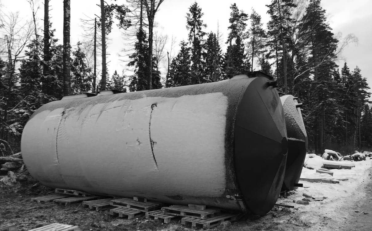 Габариты очистного сооружения: 2 емкости длиной 11600 / диаметром 2400 / весом 13800 кг.